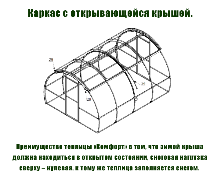Теплица 8м (Каркас, Вставка - 2 штуки, СПК - 5 листов, саморезы кров*19. - 150 шт, саморезы кров*25. - 350 шт, шайбы -350 шт, торцевой профиль 6мм - 20 шт, форточка - 1 шт, брус - 6 шт, термпопривод 300 - 1шт.)